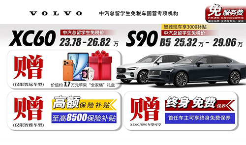 送苹果全家桶?高额补贴 / 终身保养 / 免服务费等福利 沃尔沃留学生免税车价格更新