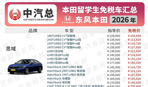 东风本田留学生免税车价格已更新