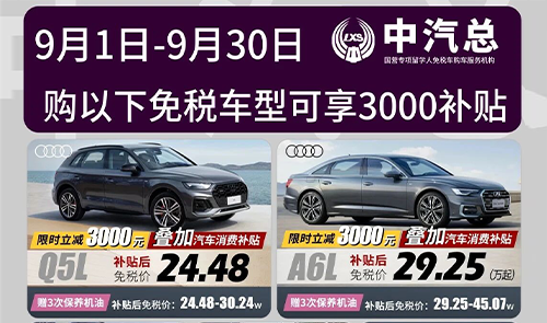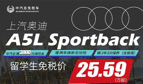 上汽奥迪A5L丨3k保险金+多重权益 留学生免税车价格发布