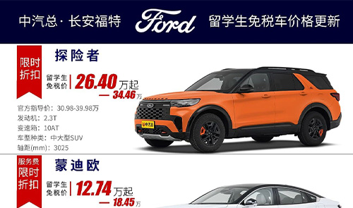 部分下调 福特留学生免税车价格更新