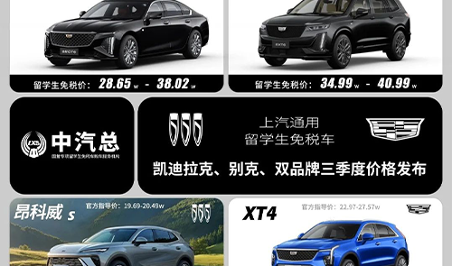 虽迟但到!凯迪拉克、别克留学生免税价格发布