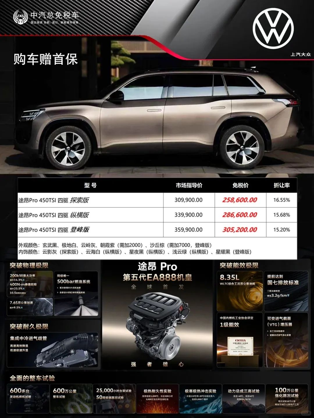 途昂Pro 450TSI四驱纵横版,零售价33.99w