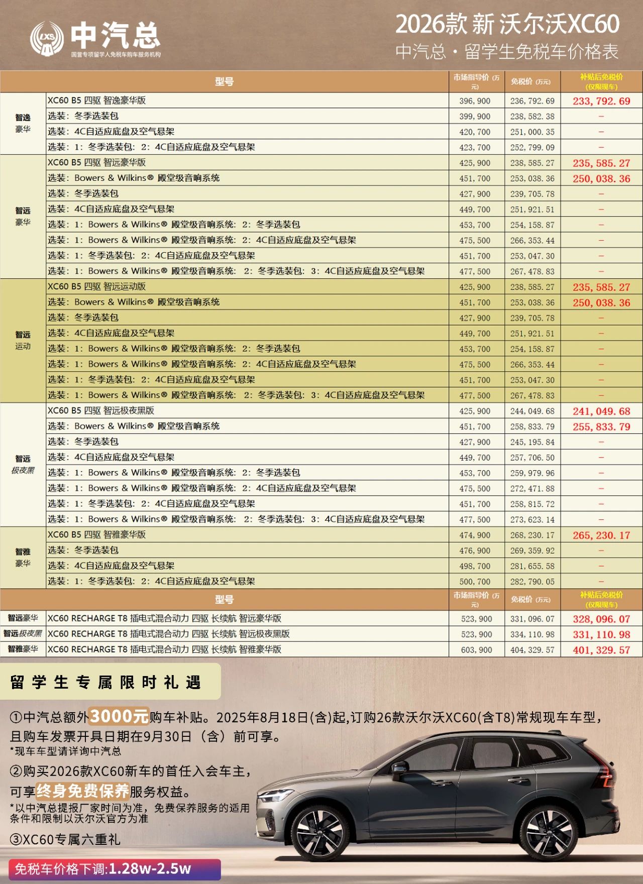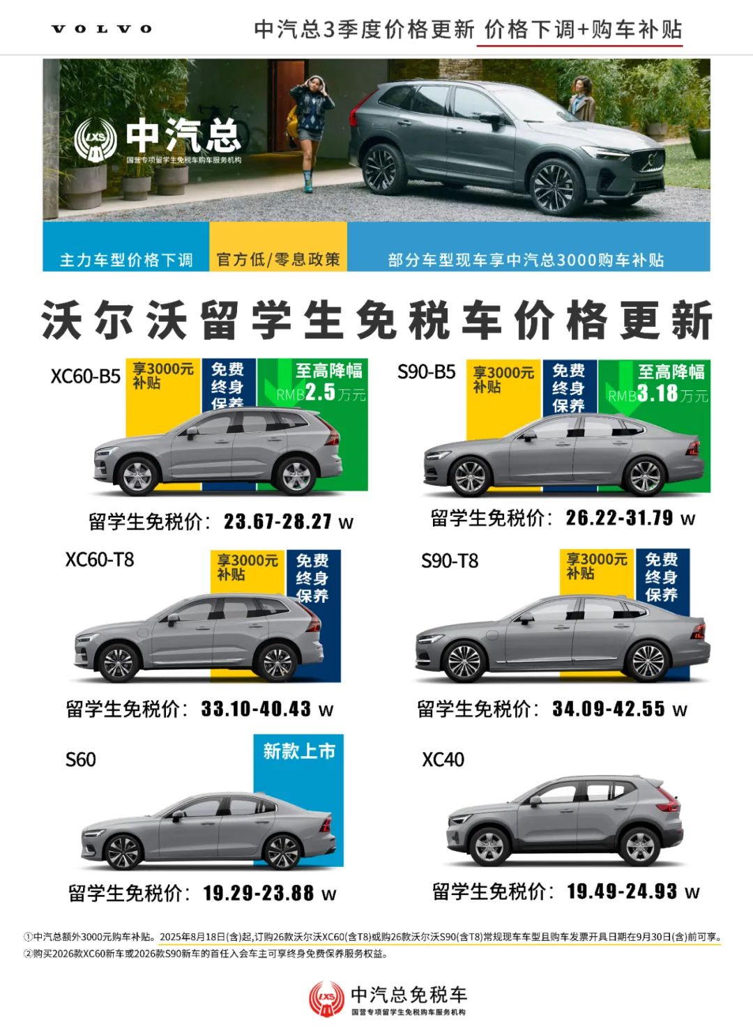 冰点价警告!沃尔沃限时3k补贴+下调+0息+六重礼 留学生免税车