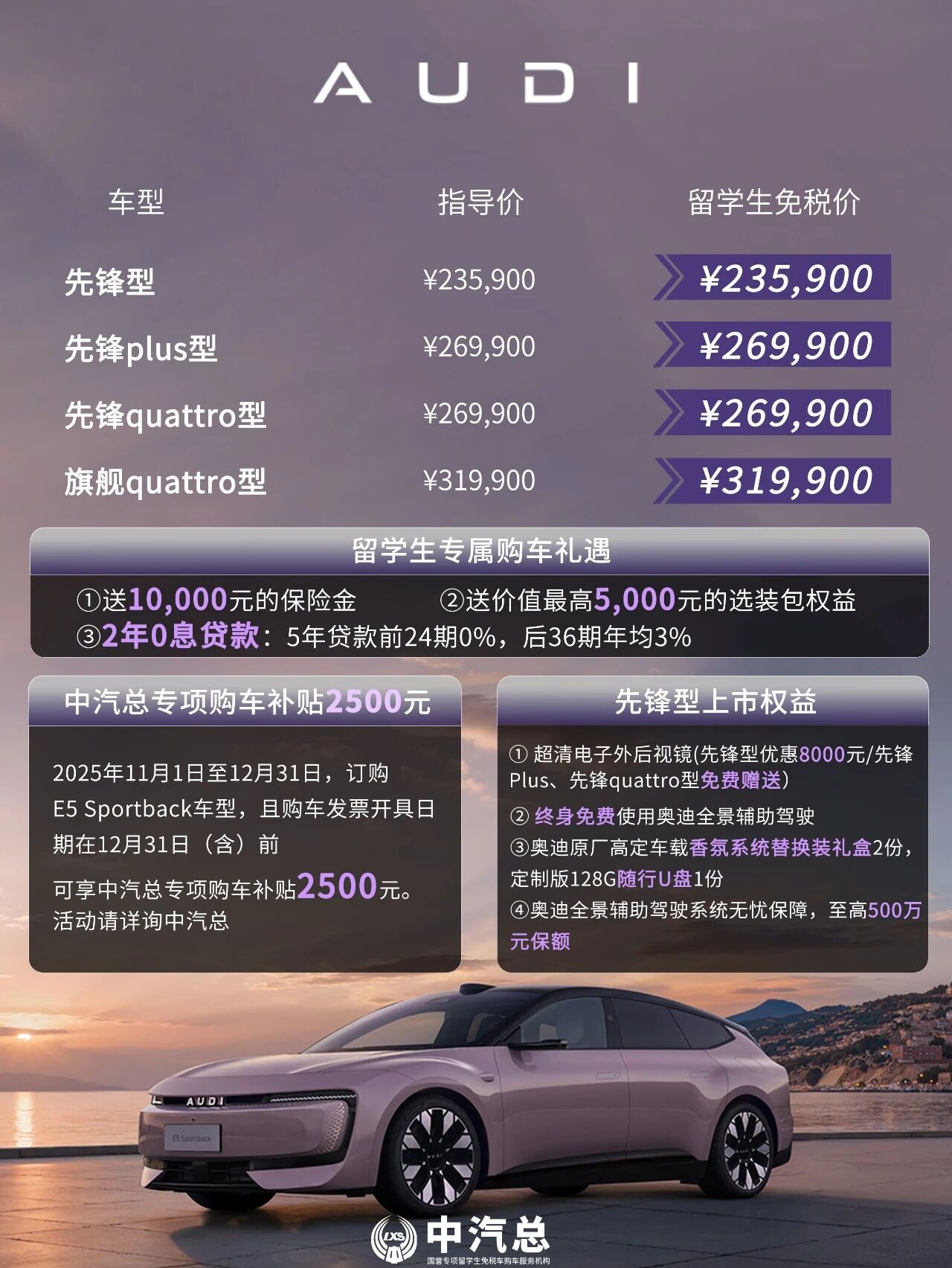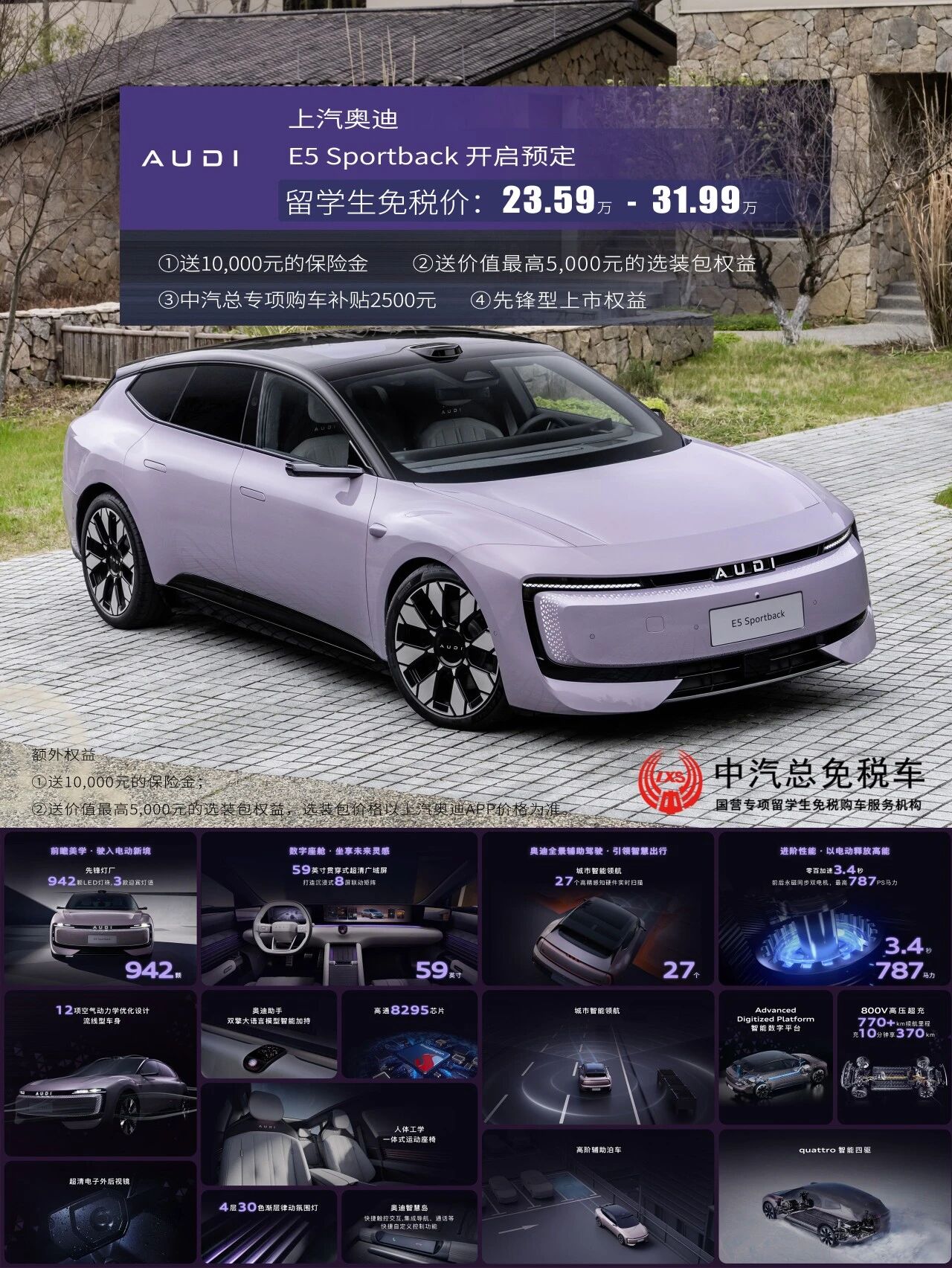 奥迪E5 spb豪华先锋上市 享购车补贴等超万元现金权益 留学生免税车