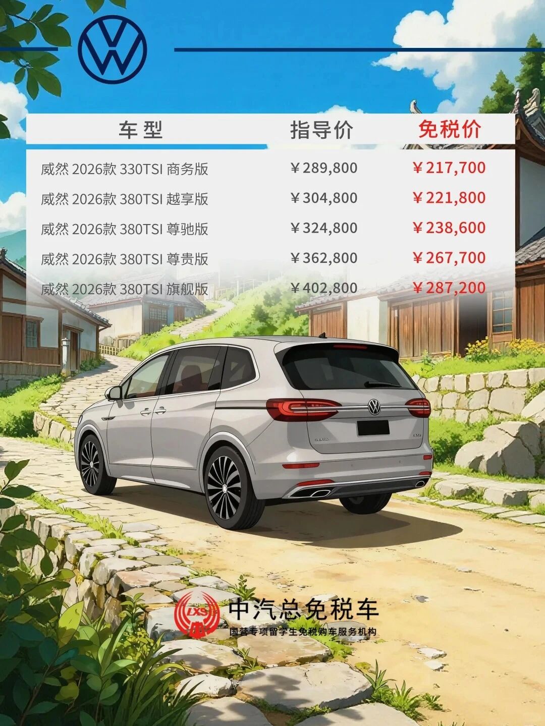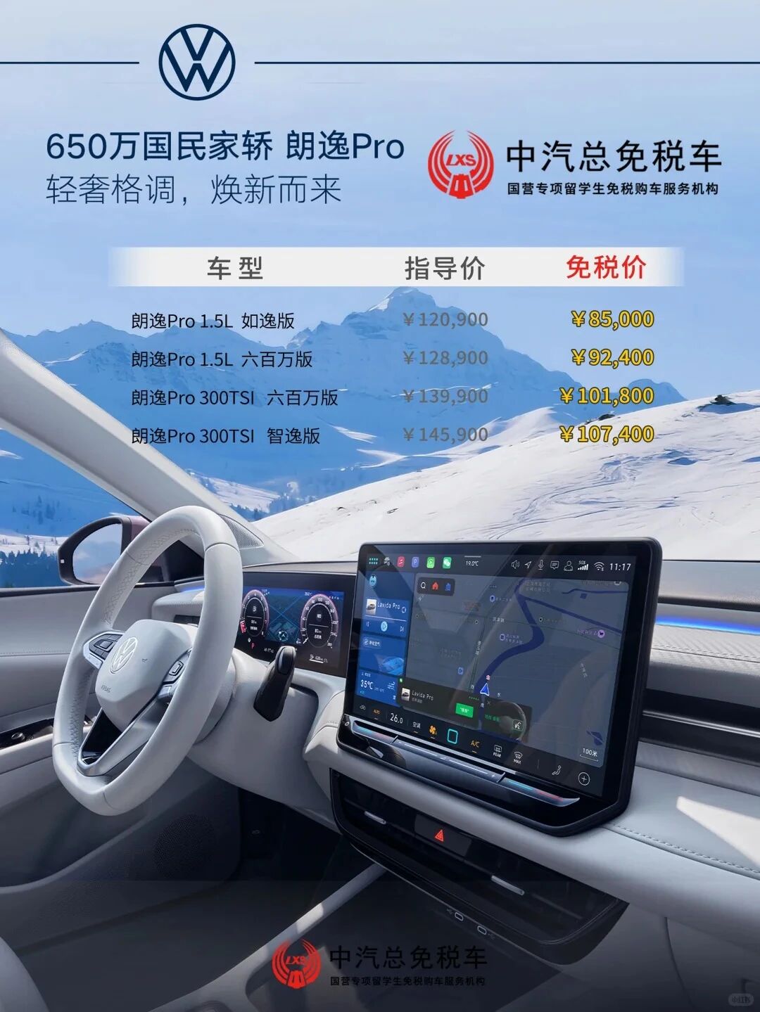新车新价格!朗逸Pro+威然 上汽大众留学生免税车价格更新