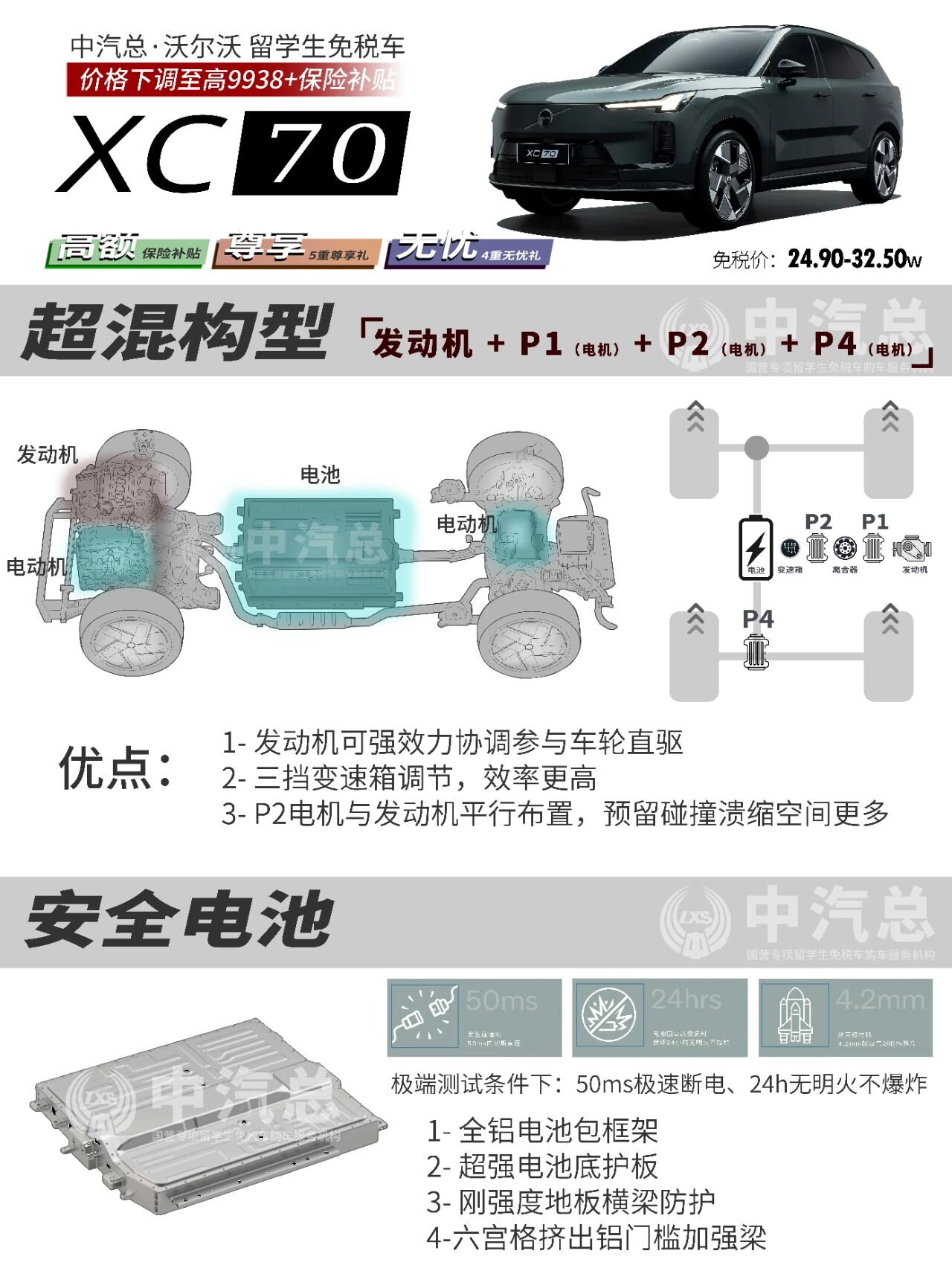 留学人员限时增购/换购活动开启!沃尔沃XC70对广大留学人员开放特惠价格,现可按留学生价格政策享受同等免税购车权益,可油+可电+可增程,综合续航超1200公里。您曾购买或申请过各品牌留学生免税车型,只要您是具备过留学生免税车申请资质(出具准购单等相关材料),现均可按留学生价格政策并享受同等沃尔沃XC70的购车权益。沃尔沃全新XC70留学人员当期优惠价格24.9w起(叠加免费保养+首年车险补贴+首发礼+出行礼+车漆限免等),相对官方零售价格优惠近27w。2025年12月31日前还可以享受购置税全额免征。另有阿尔法罗密欧、捷尼赛思、依维柯等更多车型对留学人员开放购车折扣,期待您的关注。