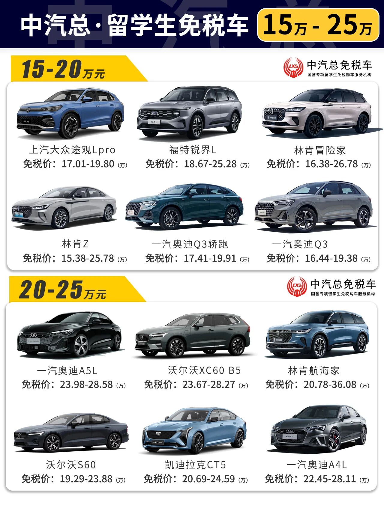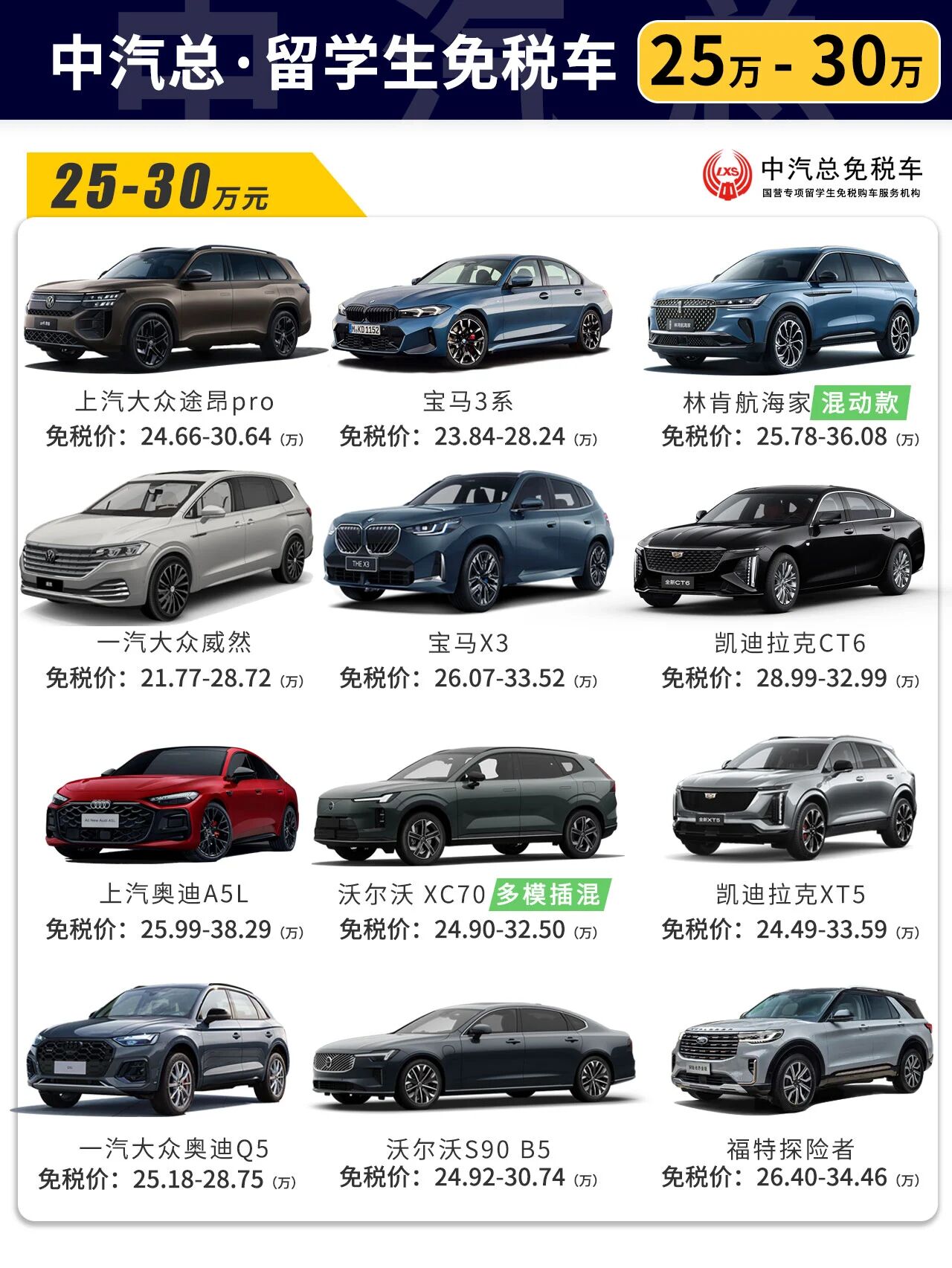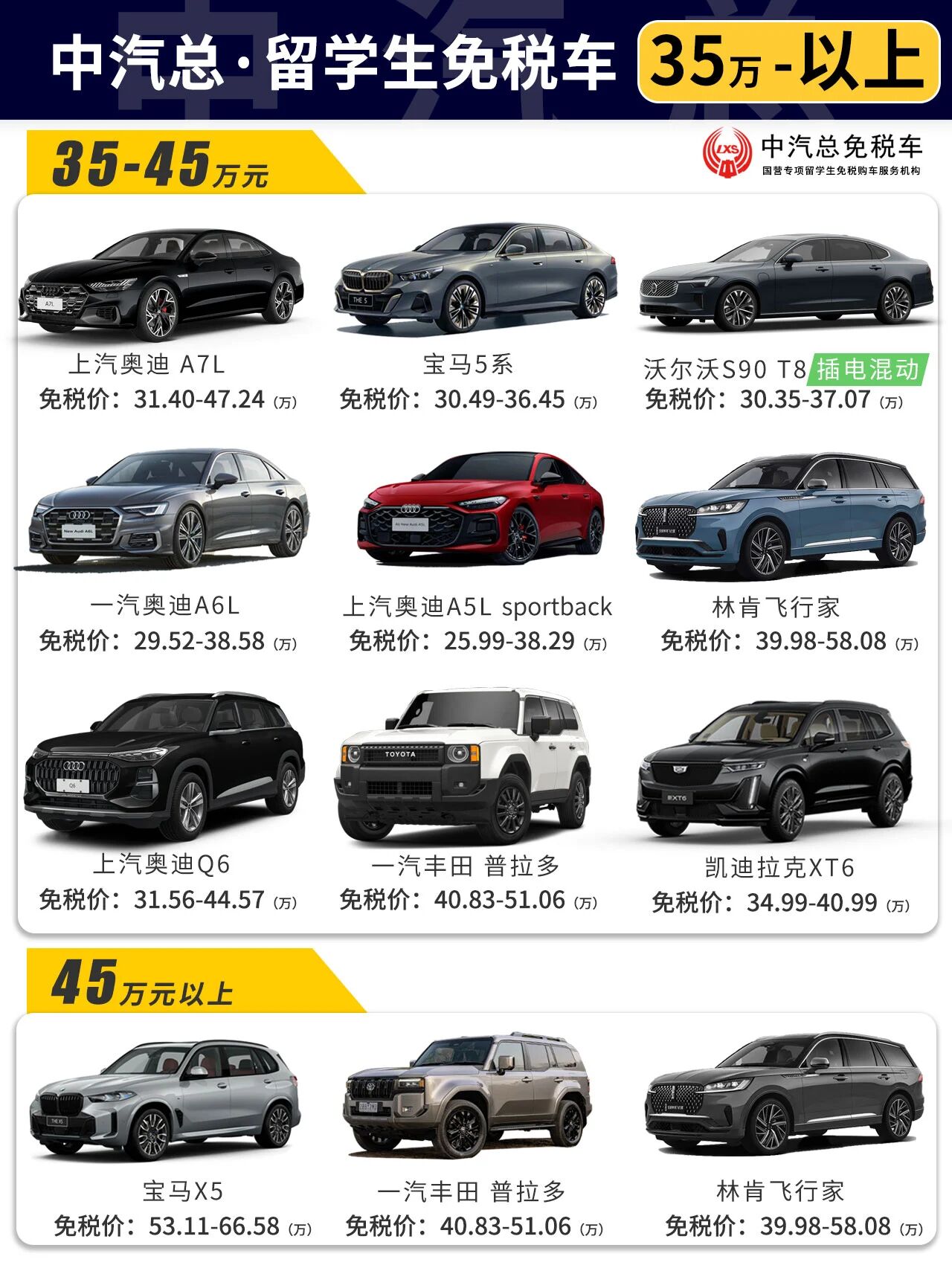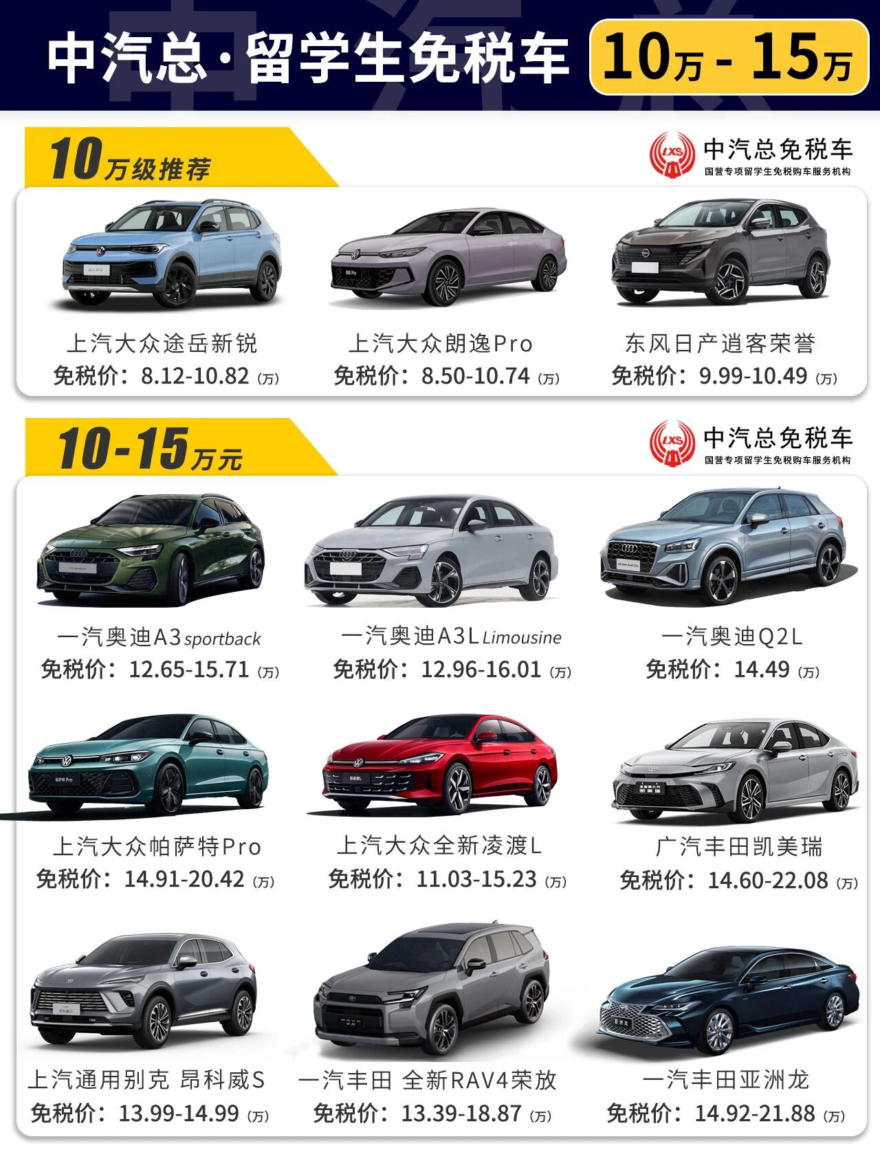 10-45万 各价格区间留学生免税车车型推荐